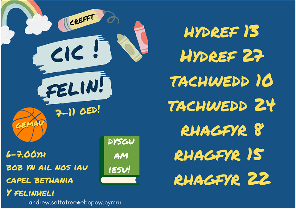 Anelir i roi sylw i’r plant yn yr oedfa, pob tro y mae’r Clwb Capel (Ysgol Sul) yn cyfarfod, ac fe drefnir gwasanaethau arbennig o leiaf 4 gwaith y flwyddyn, sef Y DIOLCHGARWCH - Y NADOLIG -Y PASG - ac yng NGŴYL Y FELIN yn yr Haf.