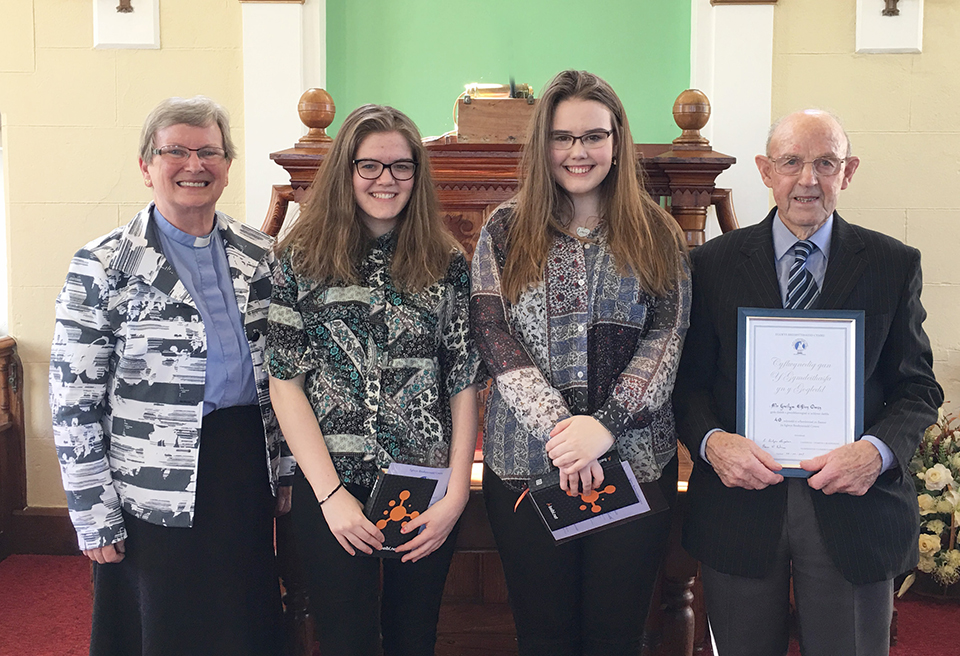 Cynhaliwyd oedfa arbennig yng nghapel Brynaerau pnawn Sul 18fed o Fehefin pryd y derbyniwyd dwy chwaer, Lowri Mair ac Alaw Mair Williams, yn gyflawn aelodau o’r Eglwys. Mae Lowri newydd gwblhau ei arholiadau Lefel A ac Alaw newydd gwblhau ei arholiadau TGAU, a’r ddwy yn byw yn Fferm Cae Morfa, Pontllyfni. Dymunir yn dda i’r ddwy yn eu gyrfaoedd. Yn yr un oedfa cyflwynwyd tystysgrif hardd i Mr Gwilym Eifion Owen wrth ei longyfarch ar gwblhau cyfnod o ddeugain mlynedd fel blaenor yng nghapel Brynaerau. Mae’r dystysgrif yn rhoddedig gan Gymdeithasfa’r Gogledd Eglwys Bresbyteraidd Cymru, ond gan nad oedd yn bosib i Gwilym Eifion fynychu’r cyfarfod yng Ngharno ym mis Mai, tybiwyd mai da fyddai ei longyfarch ar ei aelwyd ei hun ym Mrynaerau. Nid yw wedi bod yn dda yn ddiweddar a dymunwn adferiad iechyd buan iddo.